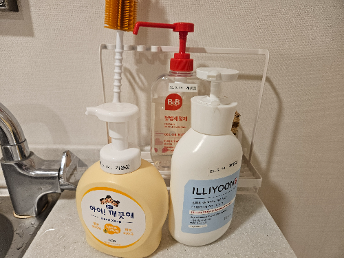 로션, 비누, 젖병소독제, 세척솔도 준비되어 있는데 개봉일자가 표시되어 있어 관리를 잘하고 있구나 하고 생각이 들더라고요